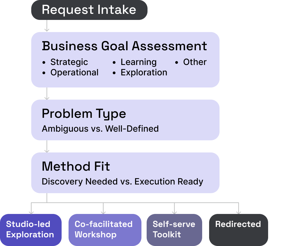 Transformed a high-demand innovation studio from a facilitation bottleneck into a scalable capability platform through measurement, routing, and operational systems.